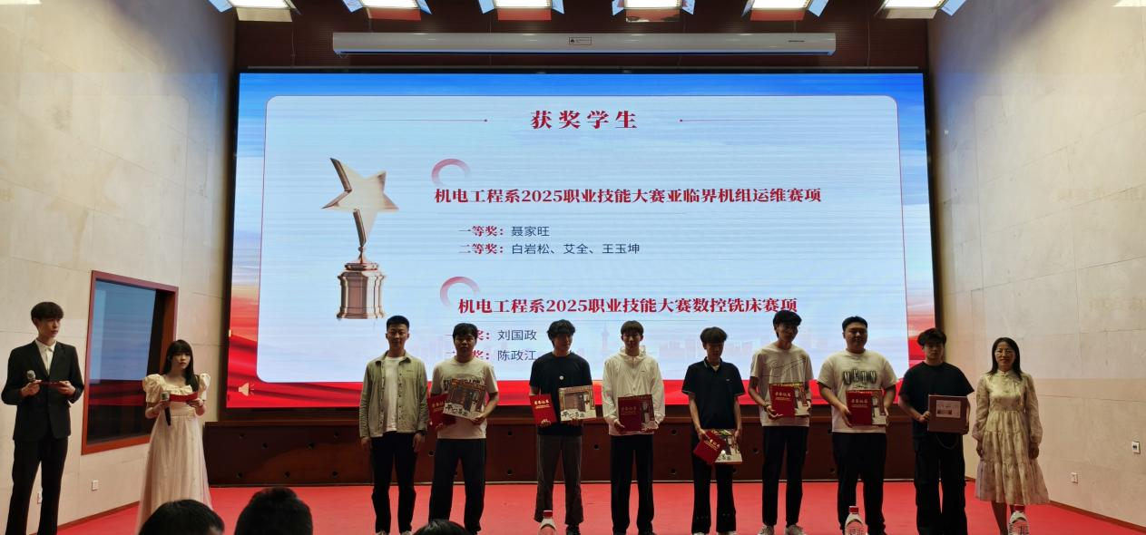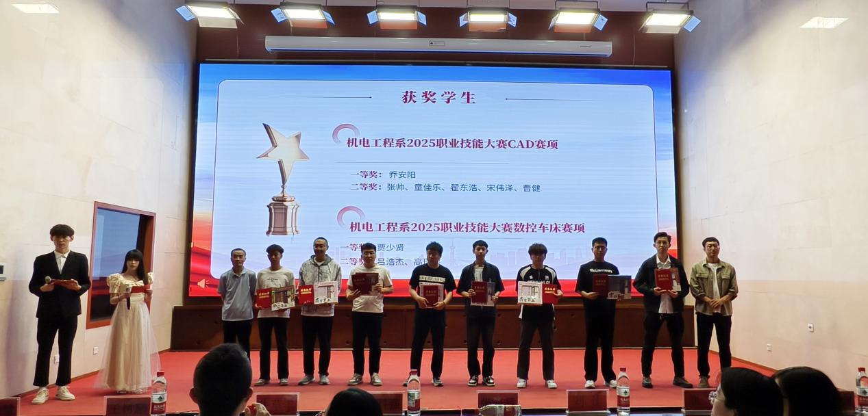 大会现场,老师们为获奖者颁发荣誉证书,是对同学们成绩的充分肯定,同时也鼓励全体机电学子以受表彰的同学为榜样,在学习与实践中不断提升自我,在新时代的广阔舞台上建功立业,续写属于机电学子的辉煌篇章。