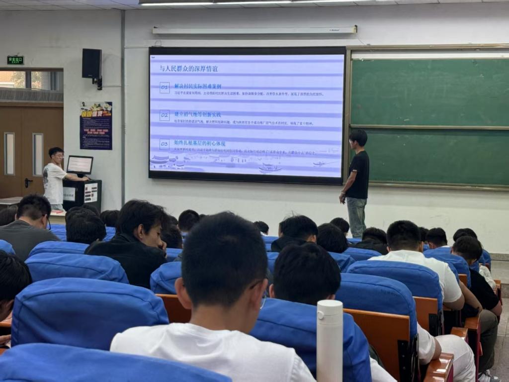 24级新能源技术班于淼同学分享的《青年青年》,如同一座灯塔,为当代青年在时代浪潮中指明前行方向。同学们的分享深入浅出,结合自身感悟与实际生活,引发了在场听众的强烈共鸣。大家或认真聆听,或低头记录,沉浸在知识的海洋中。