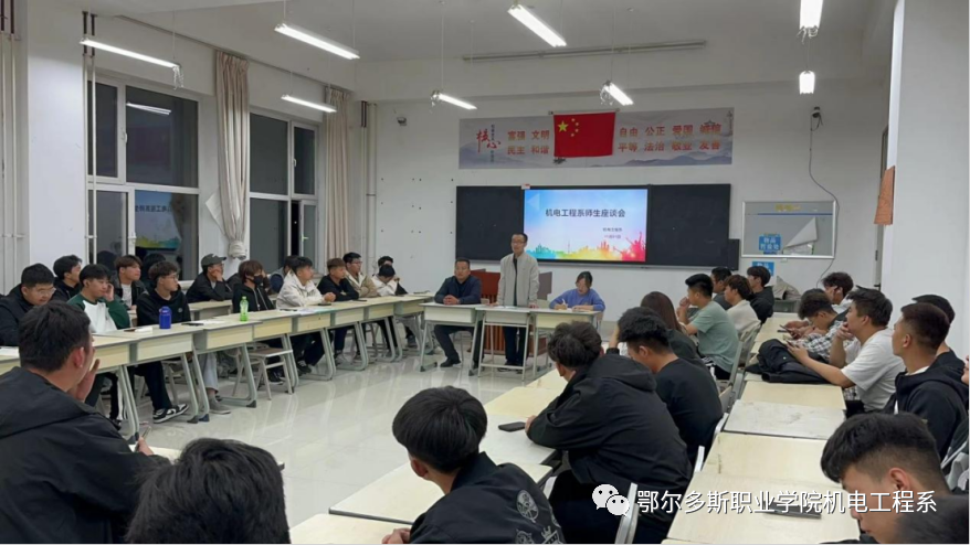 为进一步贯彻落实“以学生为中心”的教育理念,倾听学生心声,回应学生关切,助力学生成长,切实构建和谐、信任、友爱的师生关系,机电工程系于11月1日在教学楼423举办师生座谈会,党总支副书记张科强、学工负责人高斌、团总支负责人王树鹏与退伍复学学生及各宿舍长共计60余名学生代表共同座谈交流。