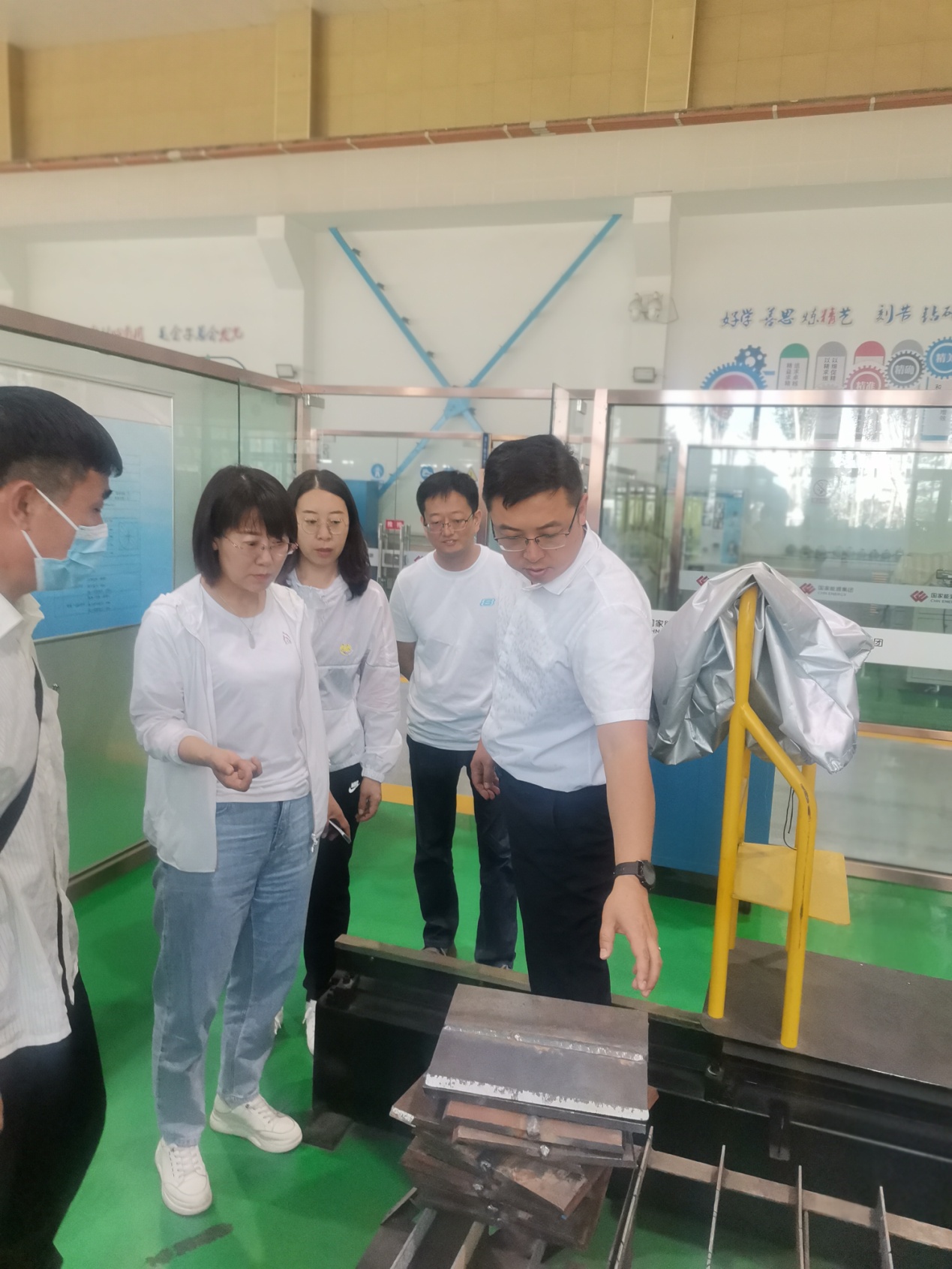 2022年6月16日上午,机电工程系主任徐秀英和系部骨干教师等一行6人到准格尔旗国家能源准能集团公司进行考察调研,徐主任在罗建军主任的陪同下,分别参观了准能集团公司的培训中心和实训车间,罗主任详细介绍了培训中心的实训设备、培训内容和鉴定工种以及企业用人需求等内容。徐主任详细了解了企业对学院人才培养的意见和建议。