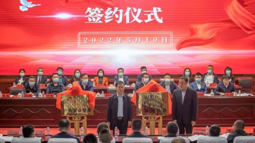 马建峰与鄂尔多斯市神东天隆矿山机械有限责任公司总经理贾礼签署校企合作协议,并为“产学研基地”“产教融合基地”揭牌。