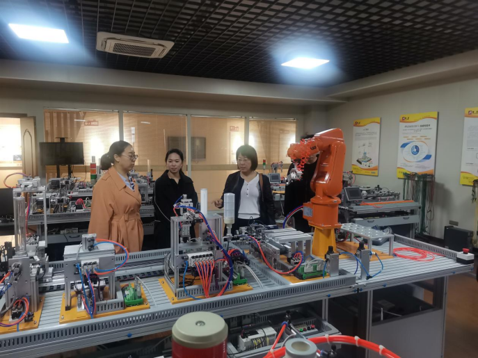 在国家示范性高职院校——广东轻工职业技术学院机电工程学院调研过程中,徐秀英主任就智能制造专业群建设方案、人才培养体系、人才培养模式、实训室建设、教学、师资等多个方面进行了深度探讨,兄弟院校就专业群建设和实训设备的升级、改造给出了建设性的意见。研讨后对该学院机电设备进行了参观。