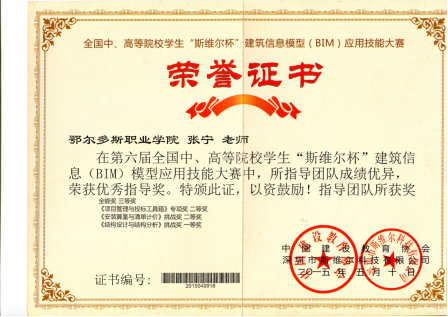 在2015年5月,由米力、张宁指导的学生马枫、王雄杰、王磊和殷高峰,在第六届全国中、高等院校学生“斯维尔杯”建筑信息模型(BIM)应用技能大赛上获得全能三等奖。