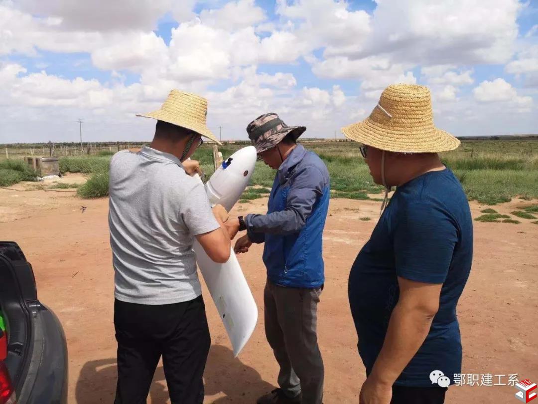 2021年8月22日,利用暑期时间,建筑工程系副主任王瑾、专任教师米力和谢建平等三名党员驱车130多公里,来到杭锦旗赛音台格嘎查,利用我系教师自组无人机进行航测作业,为牧民其日麦拉图家完成草牧场地形图的测量,以实际行动践行党员承诺。