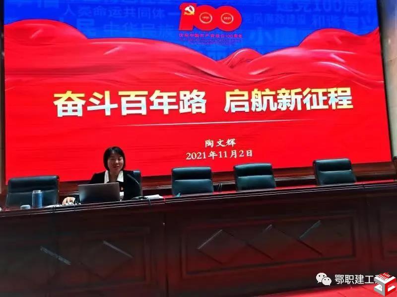 2021年11月2日下午,建工系党总支及全体入党积极分子共同参与学习了学院党委副书记陶文辉同志题为“奋斗百年路 起航新征程--习近平七一重要讲话精神内涵”的党课。