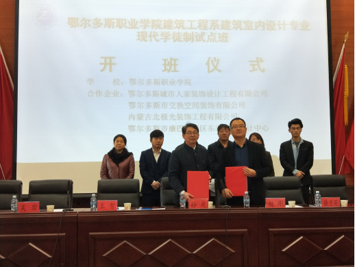 2017年12月27日上午,我院建筑工程系建筑室内设计现代学徒制试点班开班仪式在报告厅隆重举行,标志着建筑工程系现代学徒制试点扎实落地,平稳推进。
