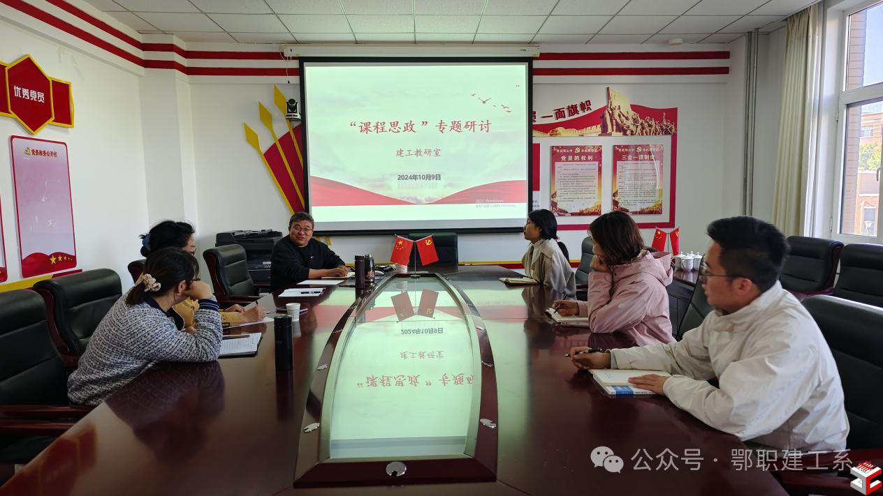 2024 年 10 月 9 日下午,建筑工程系施工教研室组织了 “课程思政” 专题教研活动。此次活动特别邀请了我系银龄专家张虹老师,在施工教研室主任米力的主持下,专任教师们积极参与,共同探寻课程思政的实施路径与实践经验。