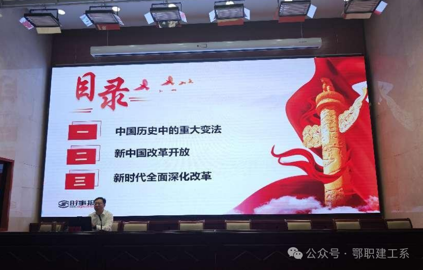 任院长从中国历史中的重大变法、新中国改革开放、新时代全面深化改革三个方面为同学们展开讲解,让同学们进一步去了解和体会国内外形式和世界政治格局,帮助大家掌握正确分析形势的立场,观点和方法。