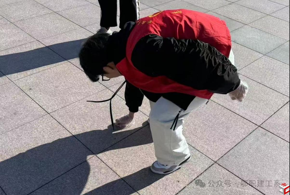 24级无人机应用技术班韩晓磊同学,在包头市昆都仑区团十一北社区居委会进行社会实践,临近春节,小区各个角落隐藏着不少烟头、纸屑和塑料瓶等杂物,韩晓磊同学和社区工作人员一起捡垃圾。他说我们要从自身做起,做好垃圾分类,积极宣传环保知识。