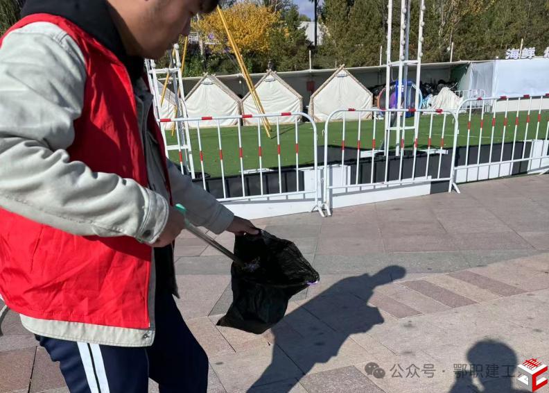 24级无人机应用技术班王靖淞同学,在鄂尔多斯达拉特旗长胜社区进行社会实践,主要参与社会服务,打扫广场卫生,在团队协作下,大家迅速分工,默契配合。这次服务让王靖淞同学懂得爱护环境人人有责,日后会更积极参与公益活动,守护我们的家园。