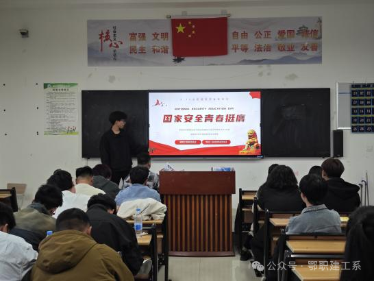 为深入学习贯彻总体国家安全观,增强青年学生国家安全意识,2025年4月15日是第十个全民国家安全教育日,建筑工程系团总支组织开展了“国家安全 青春挺膺”主题系列活动,通过团课学习、观影教育、专题讲座形式,引导广大青年学子树牢国家安全观念,勇担时代使命。