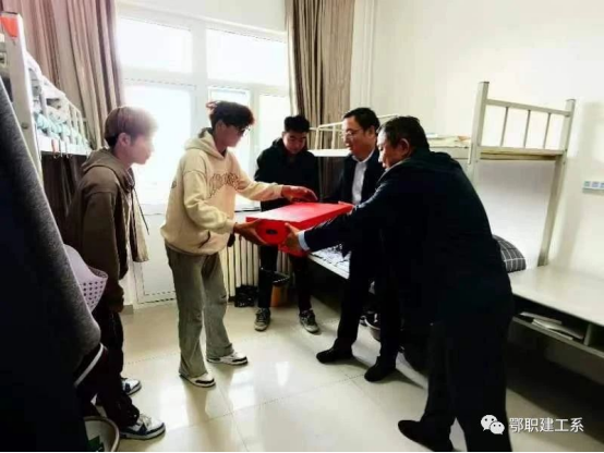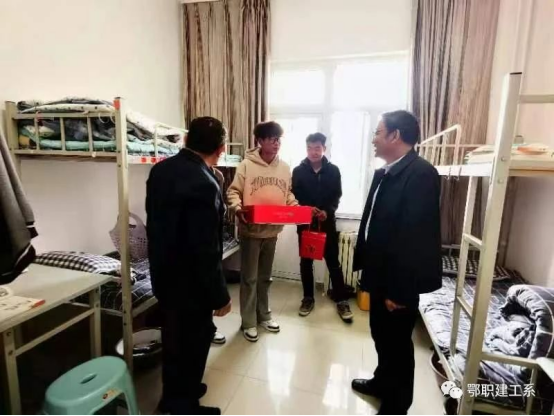2023年9月28日,在中秋佳节即将到来之际,学院党委书记马建峰,党委副书记陶文辉,党委委员、副院长杭刚,党委委员、副院长哈达,党委委员、宣传部部长付瑞,党政办主任乔祥,走进学生公寓,为建工系的留校学生送去了精心准备的月饼水果等中秋礼物,并带去了学院的诚挚慰问和美好祝福