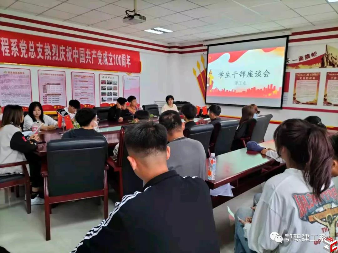 2021年9月14日中午,建筑工程系团总支召开了团学干部座谈会。建工系团总支书记郝家玉老师、韩旭老师及全体团学干部集中进行座谈学习。