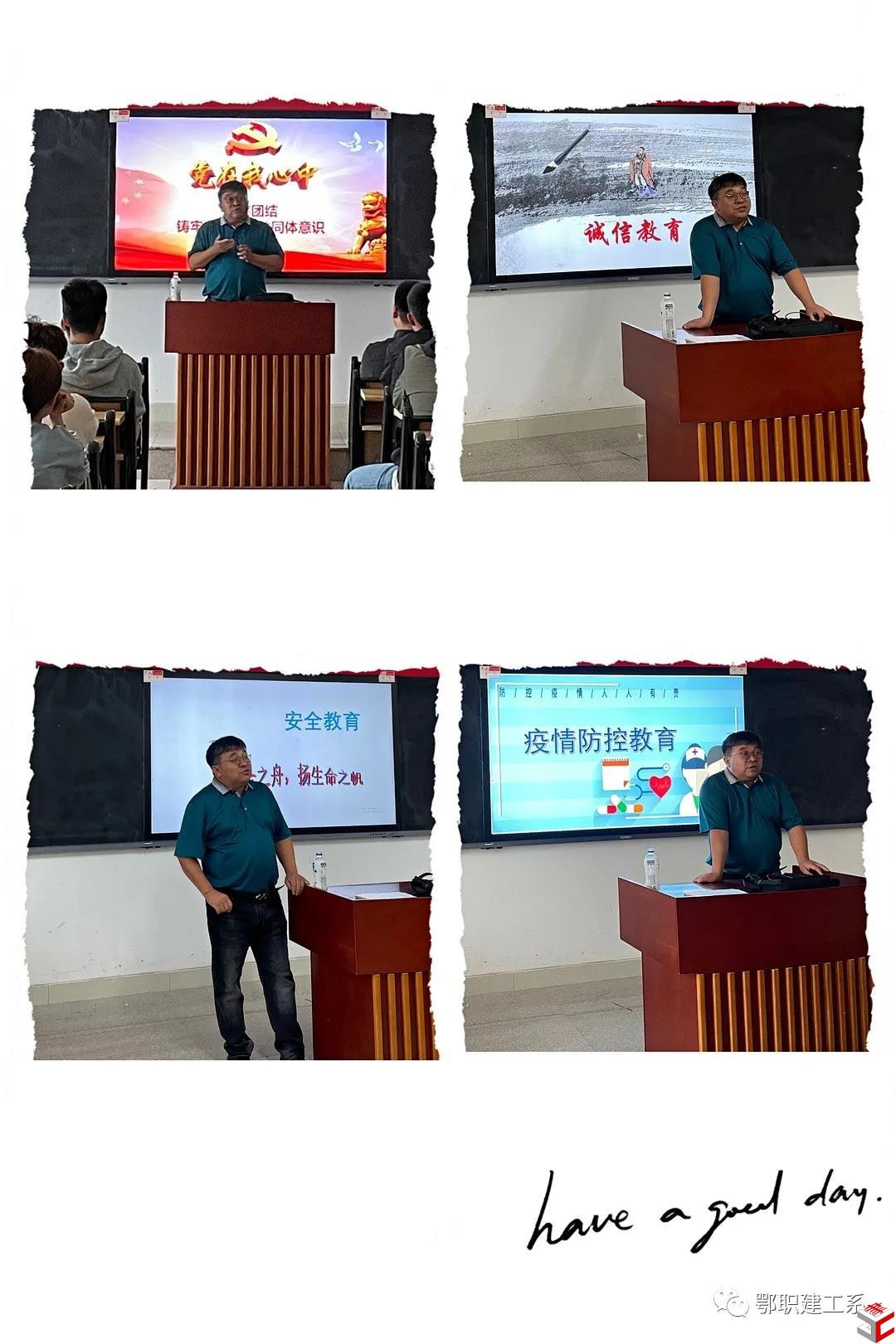 会上,他首先强调疫情防控的重要性以及学院在疫情期间各项管理的规定;另外用往届学生受骗的案例提醒学生提高安全意识,尤其是网络安全,让学生务必提高警惕,远离网络贷;另外讲解了铸牢中华共同体意识精神实质,希望同学们互相帮助尊重少数民族风俗习惯,和睦相处共建和谐校园,最后他希望全体学生培养诚信品格,做一个有担当有责任感的大学生。