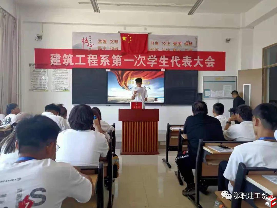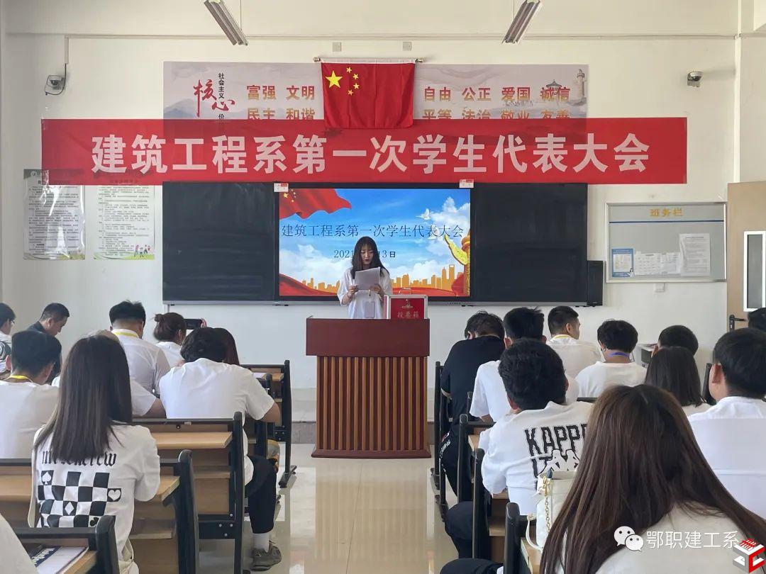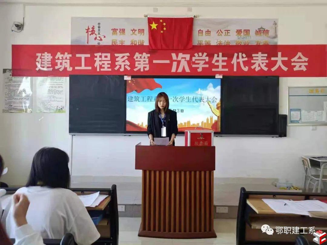由系部团总支书郝家玉老师致辞讲话 ,刘佳琪同学作建筑工程系上一届学生会工作报告 ,最后,由工作人员宣读《建筑工程系学生会章程修正案 》(草案)。全体代表在教学楼前进行了合影。