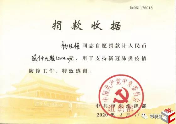 在新冠肺炎肆虐的2月里,家属正因骨折住院治疗,家庭经济困难时期,她通过党费、网络等多种渠道捐款达2000多元,并号召家属、亲戚、朋友为本次疫情捐款上万元。她以实际行动展现了新时代青年的理想信念、爱心善意、责任担当。