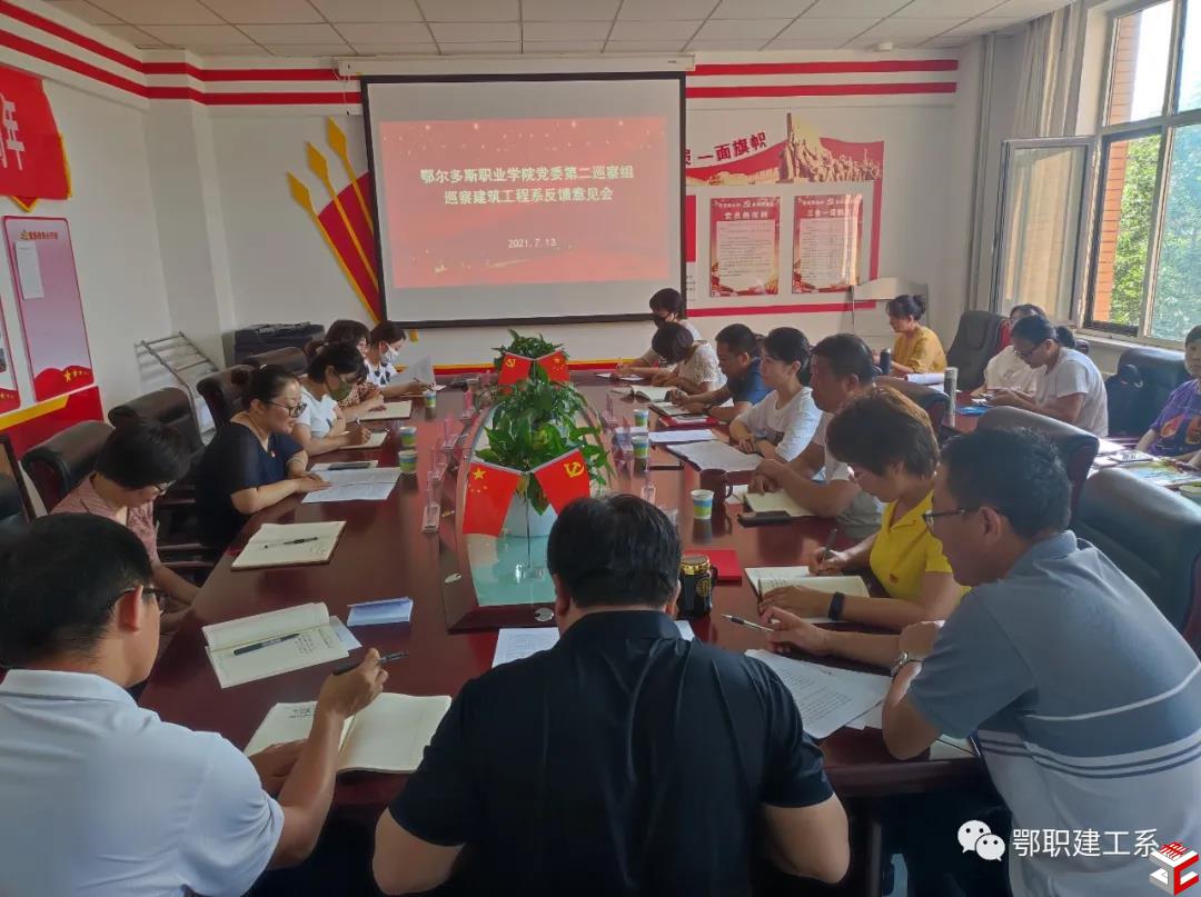 2021年7月13日,建工系召开学院党委第二巡察组巡察建筑工程系反馈意见大会,第二巡察组全体成员、建工系全体教师参加会议。