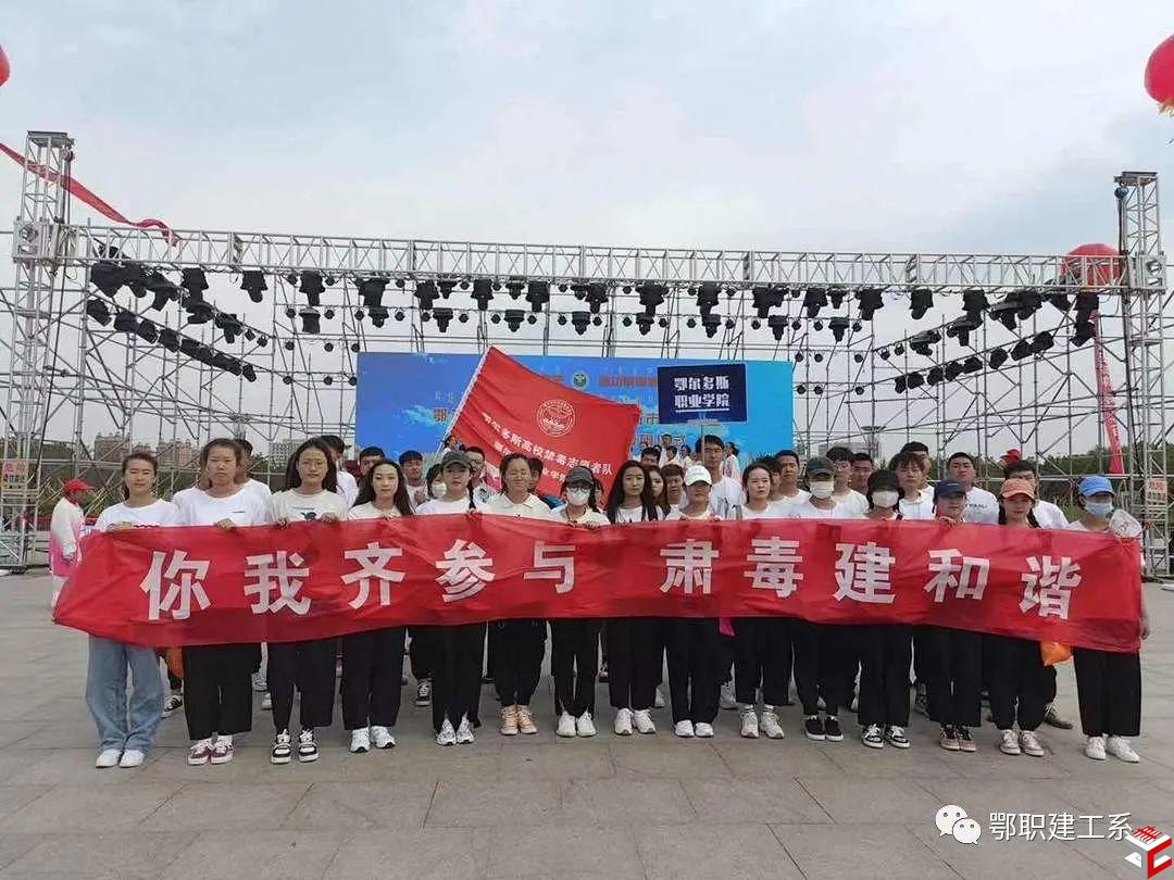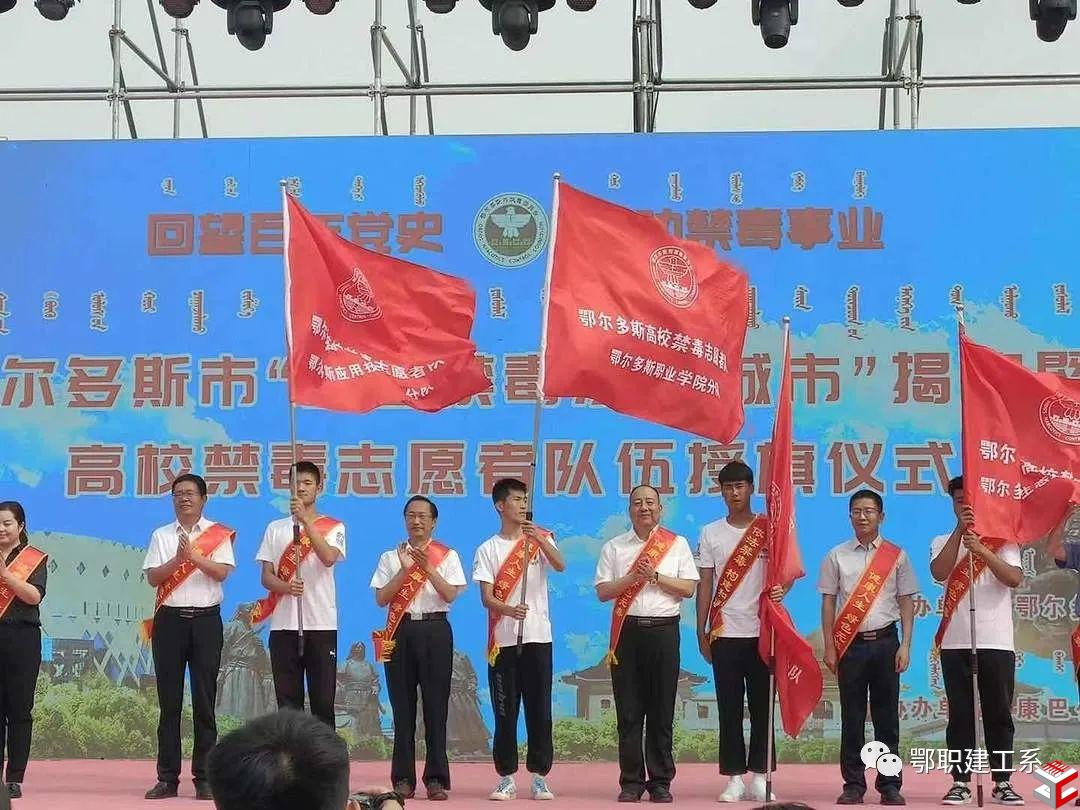 在2021年6月26日的“国际禁毒日”来临之际,为进一步宣传普及禁毒知识,帮助大学生群体认清毒品的危害,提高大学生“识毒、防毒、拒毒”意识,营造禁毒宣传氛围。6月23日上午,开云手机官方版在线入口建工系志愿者来到人工湖广场,参加了鄂尔多斯市“全国禁毒示范城市”揭牌仪式,此次活动由学院柴煊老师带领参加。