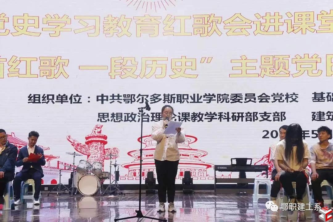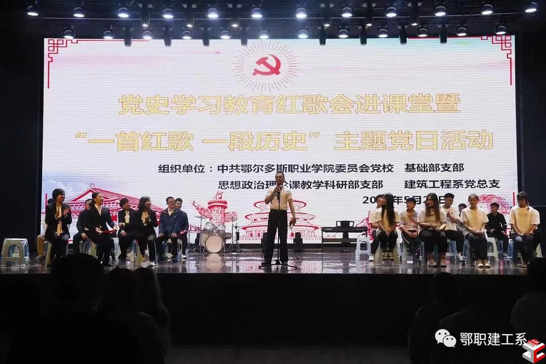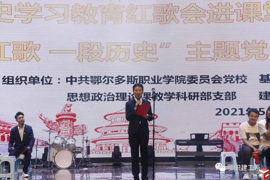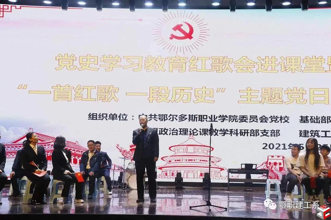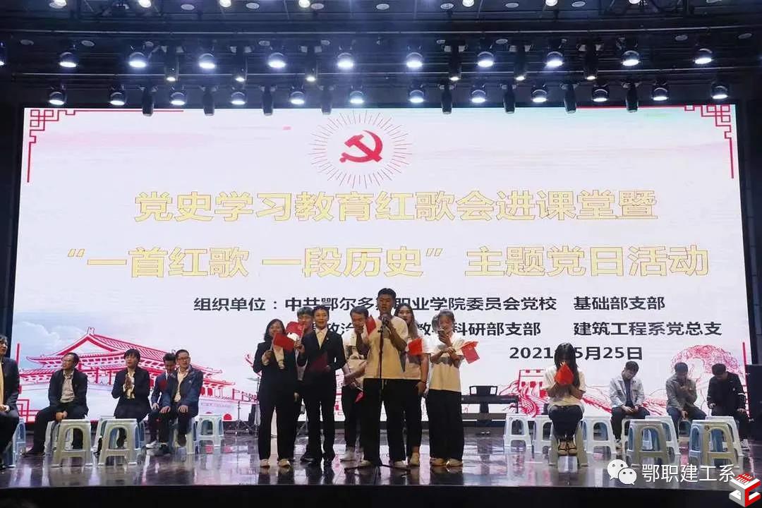 为庆祝中国共产党建党100年,扎实推进党史学习教育,2021年5月25日下午建工系党总支联合学院基础部支部、思想政治理论课教学科研部支部以及学院党校在文体中心开展党史学习教育红歌会进课堂暨“一首红歌,一段历史”活动,所有教师党员,党校全体入党积极分子与发展对象参加了活动。