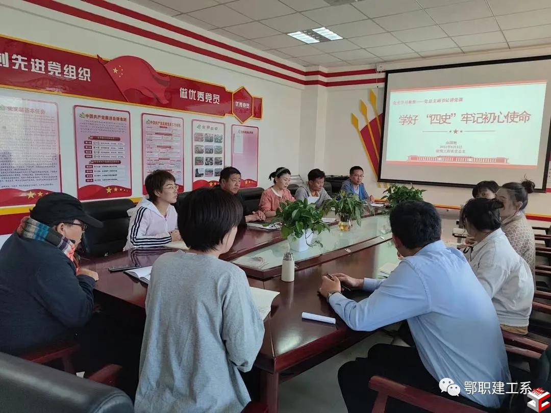 2021年6月3日,建筑工程系党总支副书记由国艳在教研楼224讲了以“学好四史,牢记初心使命”为主题的党史学习教育专题党课,建工系全体党员教师参加。