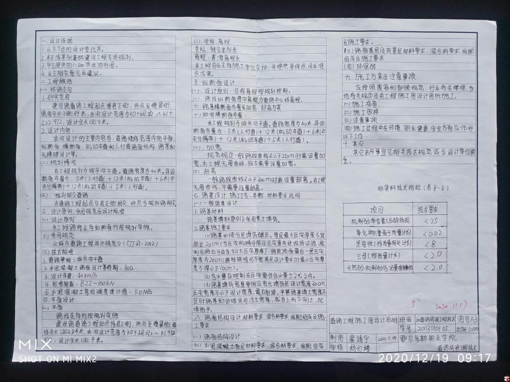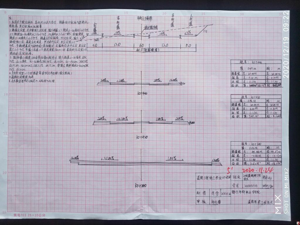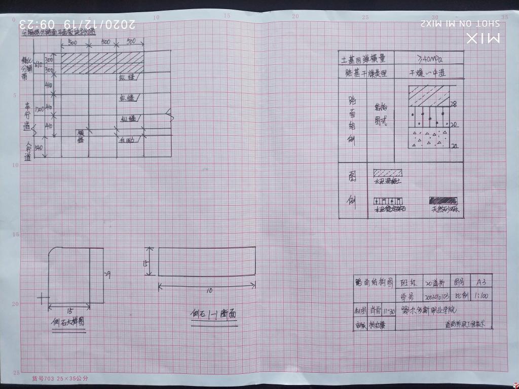 学生通过现场踏勘校园教学楼和鄂尔多斯周边典型路桥建筑,以校园教学楼建筑施工图纸、鄂尔多斯市政道路施工图、康巴什乌兰木伦河4#桥施工图、机场立交桥施工图为依托,编写教学楼设计说明和道路工程施工图设计说明,抄绘教学楼东侧平面图、立面图、剖面图、楼梯详图、路线平面设计图、横断面图、路面结构图、桥梁总体布置图等专业施工图纸,认识房屋和路桥构造、建筑材料及施工技术,准确领会设计意图,熟练运用工程语言与合作伙伴进行技术信息交流。手绘作品展现了学生严格遵守建筑和路桥制图规范、实事求是的科学态度以及精益求精、一丝不苟的工匠精神。