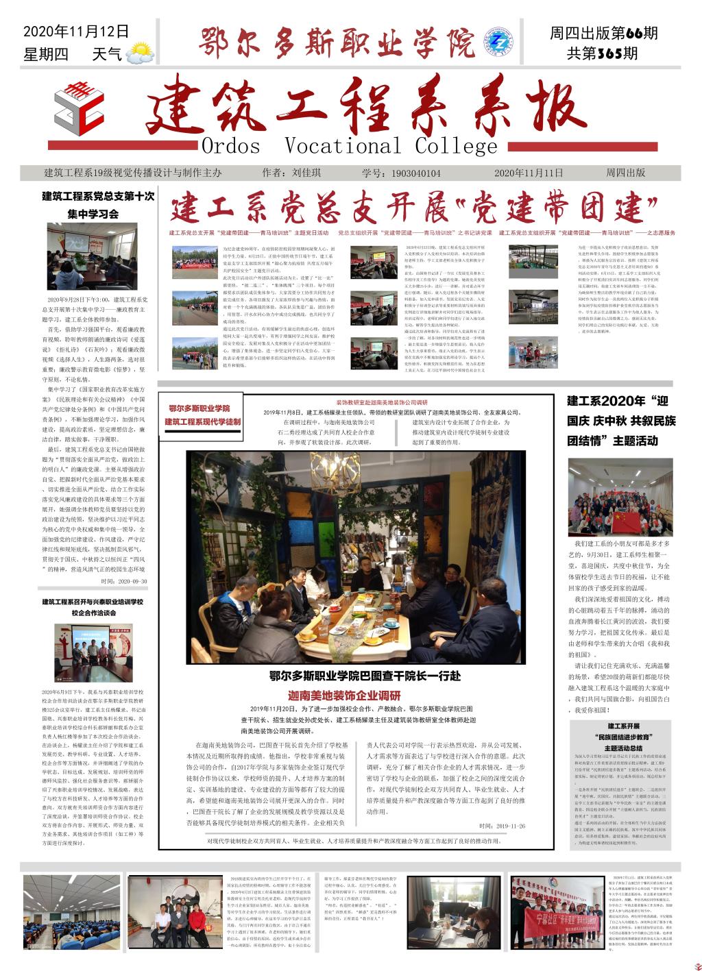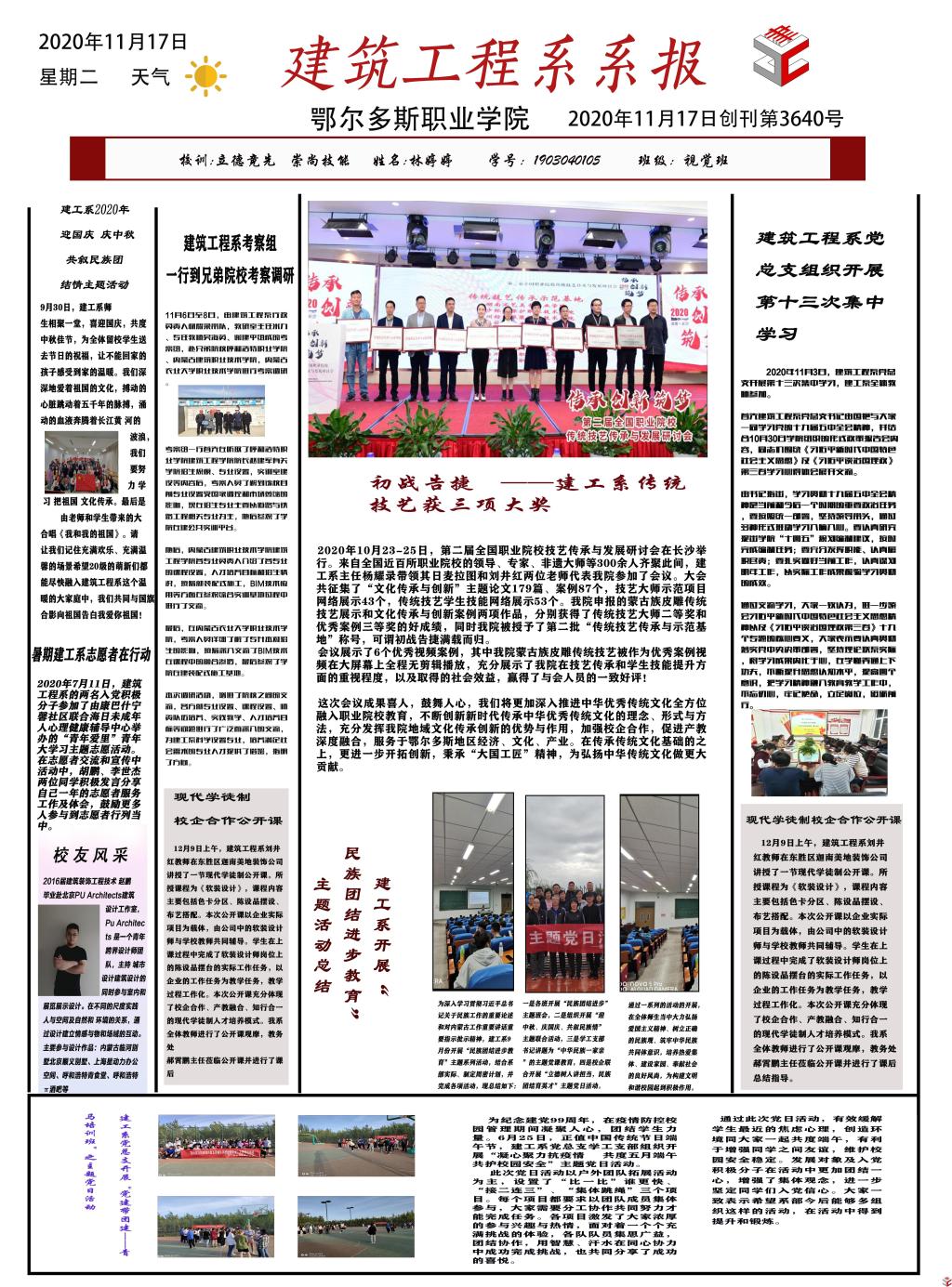 建工系以落实立德树人根本任务,提升学生综合素质为宗旨,开展此次以“中国梦、建工梦、我的梦”为主题,通过学生课程作品展播形式,打造系部品牌建设,展示教学成果,推进校园文化建设。