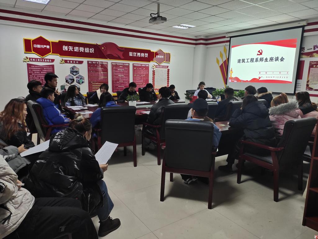 2020年12月13日晚,建工系在教研楼224会议室召开师生座谈会,就本学期学生生活、学习、班主任管理等方面开展了专题座谈,旨在听取同学们的心声,提升系部管理水平。