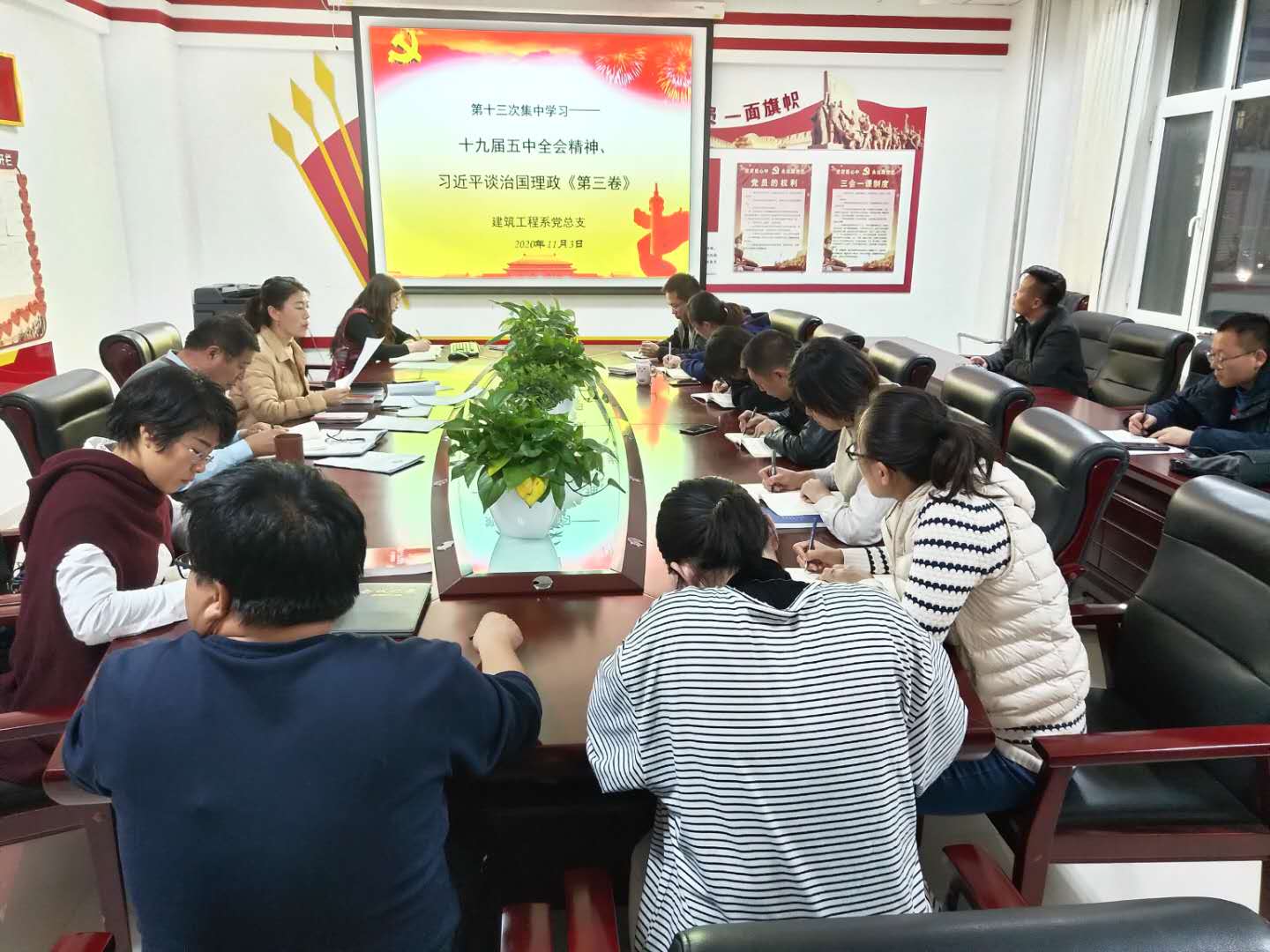 2020年11月3日,建筑工程系党总支开展第十三次集中学习,建工系全体教师参加。