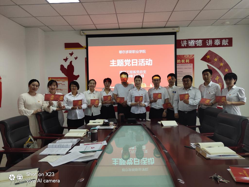为纪念中国共产党成立99周年,继承和发扬党的光荣传统和优良作风,铭记抗疫英雄,激励党员干部进一步坚定理想信念,发挥模范带头作用,增强党组织的凝聚力、号召力和战斗力,2020年7月1日建筑工程系党总支组织全体党员开展庆“七一”主题党日活动。