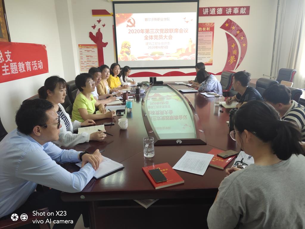 2020年6月5日下午,建工系召开了2020年第三次党政联席会议,会议由建工系系党总支书记由国艳主持,全体党员教师参加。