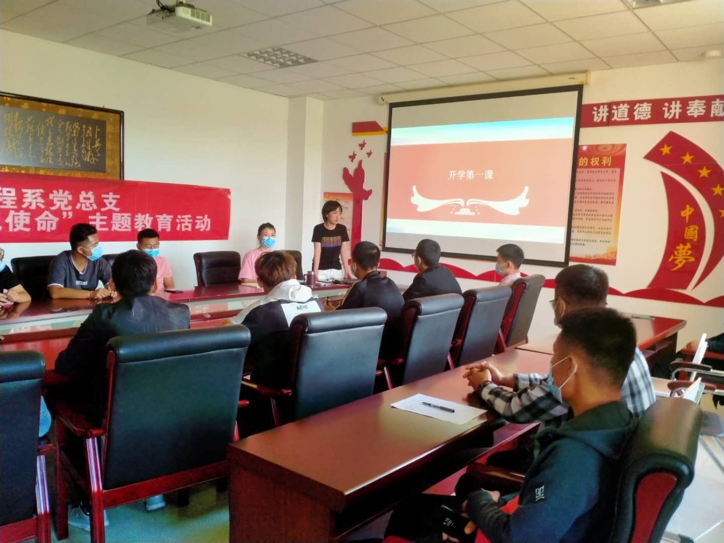 截止5月31日,建工系两批返校学生96人全部到校,系部于5月24日、5月30日分两批组织学生开展“开学第一课”教育,学习会由辅导员韩旭主持,系党总支书记、班主任及全体到校学生参加。