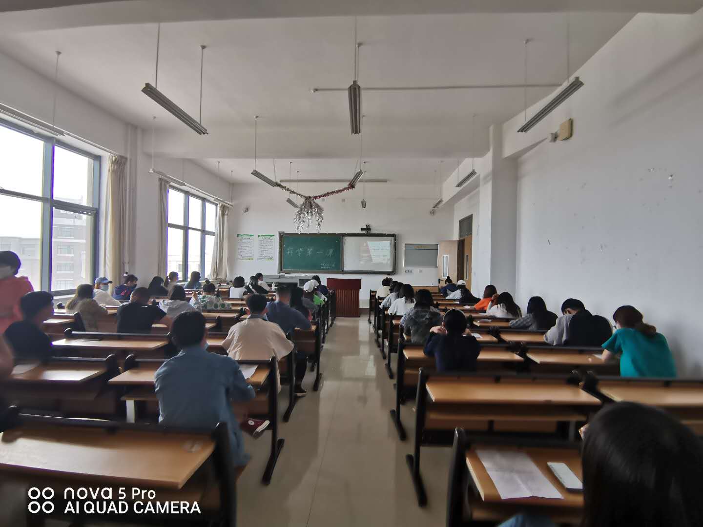 学习中,学生们观看了学院党委书记闫凤鸣主讲的以《坚持党的领导,发扬中国精神,为创造美丽精彩的青春而努力奋斗》为题的思想政治教育第一课以及市中心医院肖斌博士主讲的《新型冠状病毒的认识与防护》疫情防护第一课。