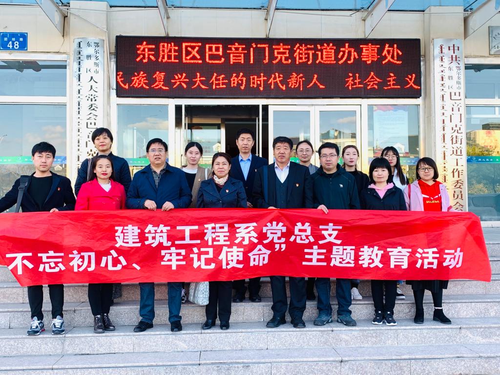 2019年10月18日,建筑工程系全体教师和部分入党积极分子深入到东胜铁西越秀社区进行“不忘初心,牢记使命”主题教育志愿服务暨主题党日活动。