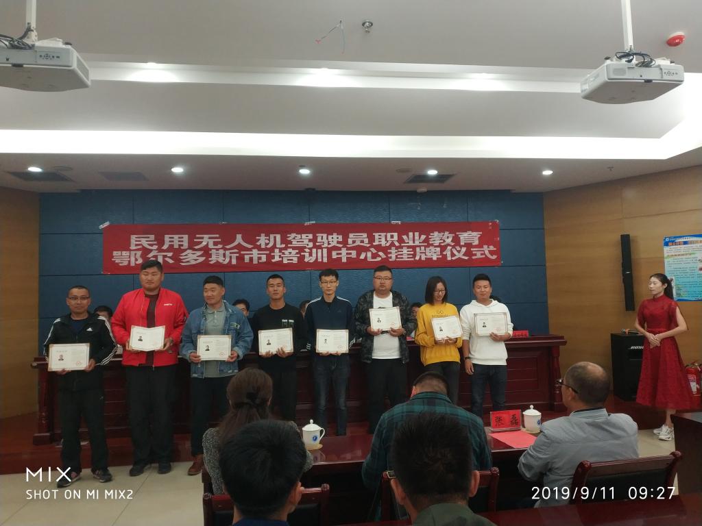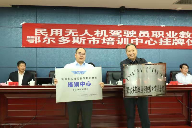 9月11日上午,民用无人机驾驶员职业教育鄂尔多斯市培训中心挂牌仪式在学院培训中心举行。学院党委副书记、院长巴图查干、鄂尔多斯市公安局警务航空支队长苏治荣、学院副院长王贵、招生就业处处长孙虎、云领科技有限公司副总经理贝嘎勒,建筑工程系、资源工程系、云领科技有关领导、老师和首期民用无人机驾驶员培训班学员参加了挂牌仪式。