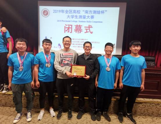 由我院教师李威坤、谢建平指导的比赛队获2019年全区高校南方测绘杯大学生测量技能大赛:团体二等奖、1:500数字测图单项二等奖、二等水准测量单项二等奖、RTK放样单项三等奖,获奖学生尹健淇,陈少泰,涂光利、王强。