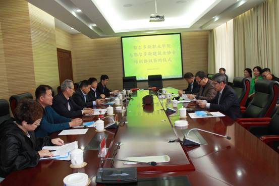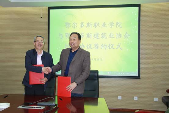 4月29日,学院与鄂尔多斯建筑业协会培训合作签约仪式在学院行政楼举行。