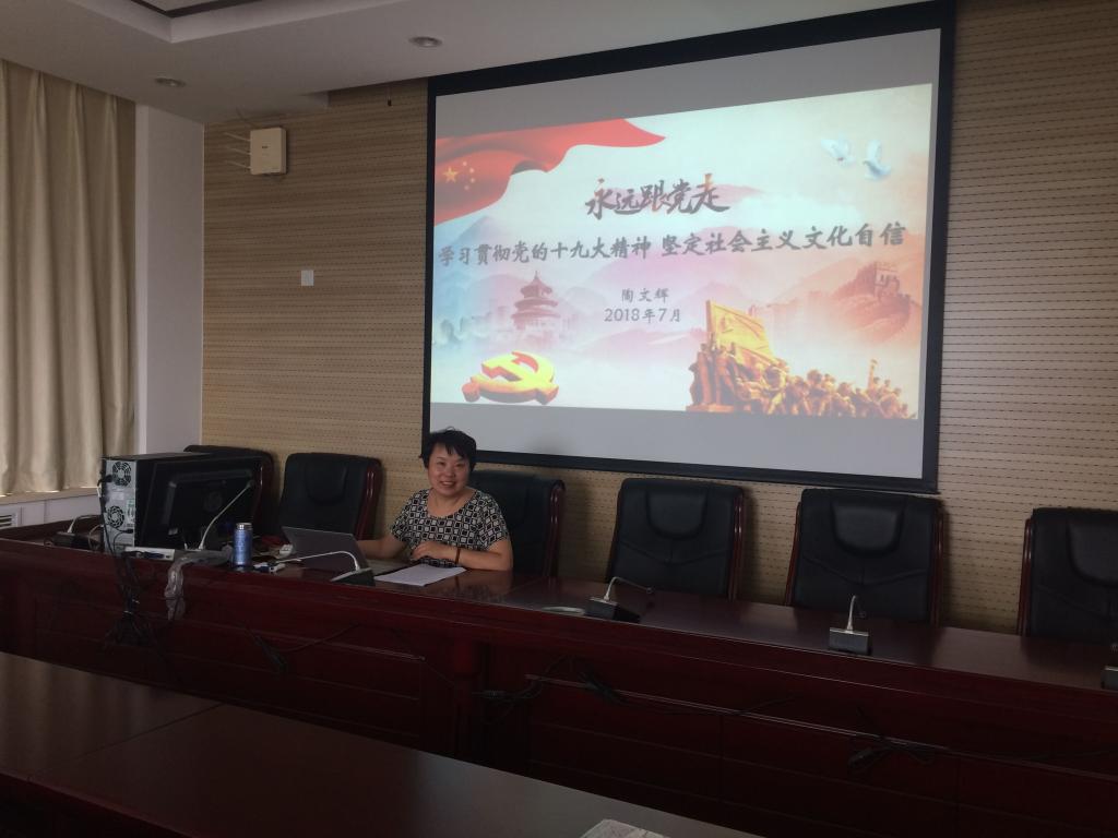7月9日上午,学院党委委员、副院长陶文辉在教研楼301会议室,以“学习贯彻党的十九大精神 坚定社会主义文化自信”为主题,为建筑工程系和基础部三十多名师生党员、入党积极分子上了一堂生动而又深刻的党课。