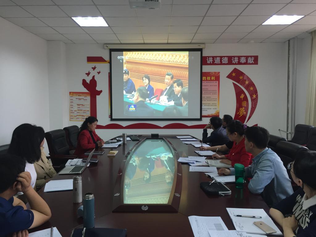 学习会上,全体教师观看了《习近平总书记参加十三届全国人大一次会议内蒙古代表团审议时的重要讲话》视频,学习了全国“两会”精神主要内容。