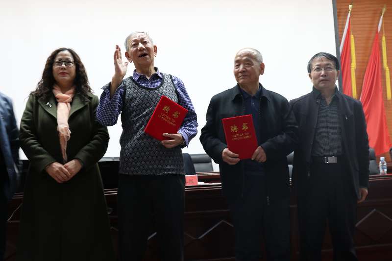 杨喜报同志围绕周恩来同志的思想工作方法为我院师生作了生动深刻、深入浅出的报告。将近两个小时的报告,他精神矍铄,激情澎湃,让在场师生深受感染。报告结束后,建筑工程系为杨喜报和杨外山同志颁发了校外辅导员聘书,学生代表上台为两位老人献花并合影留念。