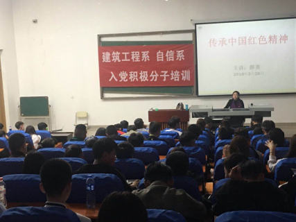 3月26日,建筑工程系党总支副书记薛英为建筑工程系及自信系90余名入党积极分子讲了以“传承中国红色精神”为题的思想政治教育课。