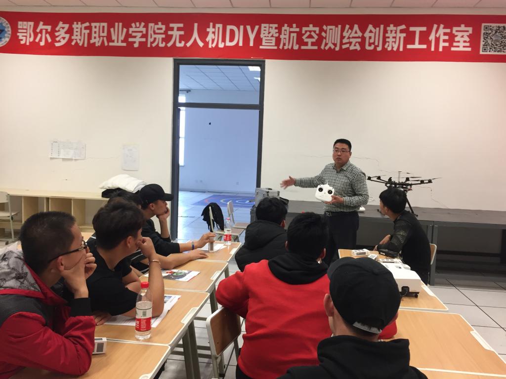 3月17日,由学院引进技术技能型人才宋宪磊老师,继续在实训基地201开展2017~2018第一学期的无人机DIY及航测第二课堂。宋老师首先带领大家复习了Pix4Dmapper,Umap,Altizure等软件的使用,接着介绍了Missonplaner地面站操作软件的使用。最后,宋老师指导学生在室外进行了多旋翼无人机轮流训练并与学生交流飞行心得。