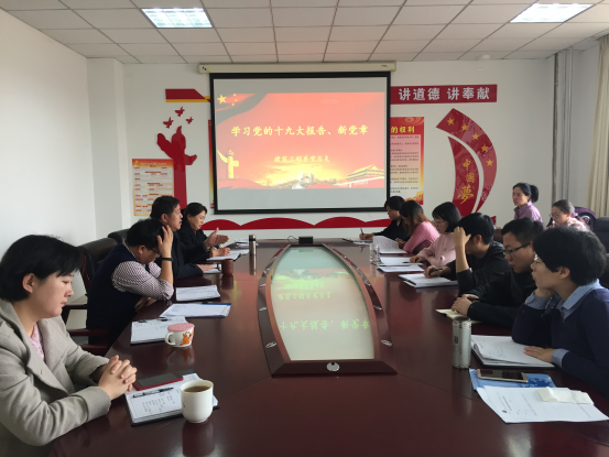 最后,全体教师认真学习了《党的十九大报告》和新修订的《中国共产党章程》,对学习材料中的“八个明确”、“十四个坚持”、“党员义务”、“党的基层组织的基本任务”等内容进行了交流讨论。