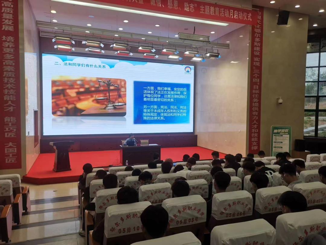 为了提高大学生的法律素养和法治意识,切实推动平安校园建设,促进学生健康成长,持续做好校园欺凌和违法犯罪的防治工作,5月25日,汽车工程系联合人文管理系和资源工程系邀请鄂尔多斯市第四检察部主任检委会委员、四高检察官杨燕同志,为我院学生作了“培养法治意识 系好人生纽扣”的普法教育专题讲座。