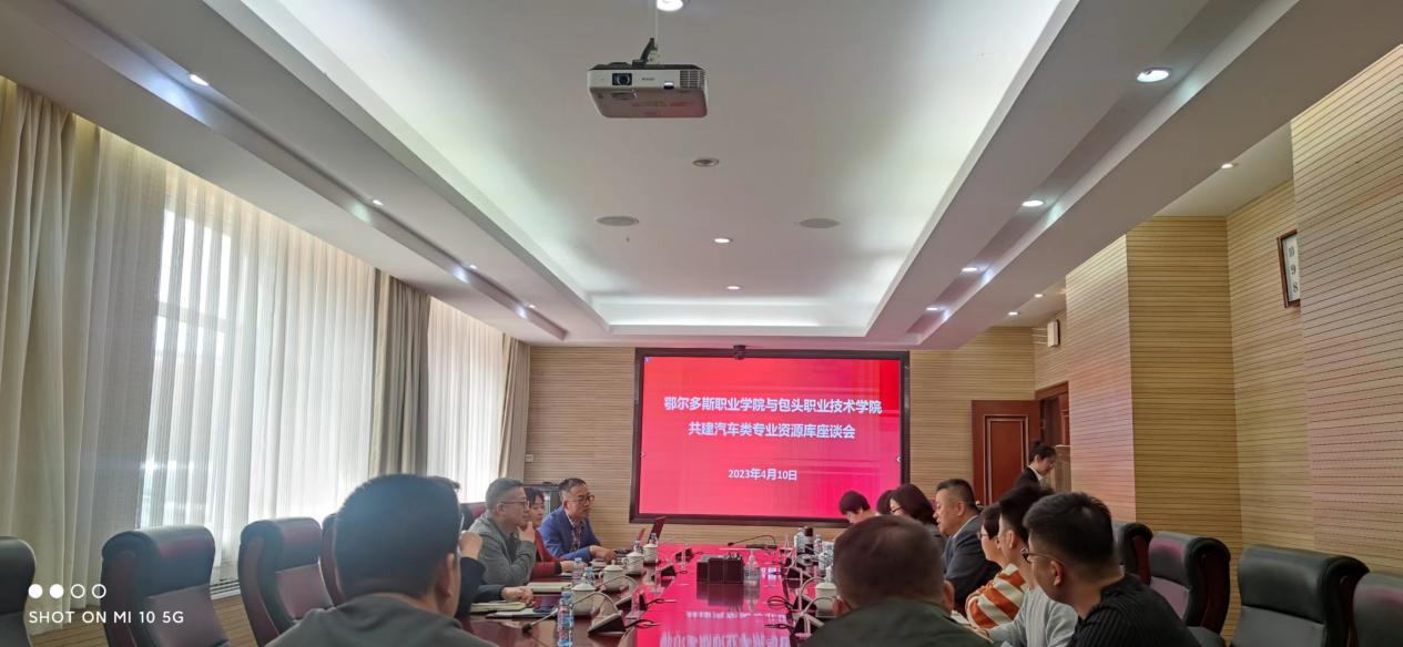 为进一步推进学院课程教学资源源库建设,助推汽车类专业高水平发展,4月10日上午,包头职业技术学院车辆工程系主任沈盛军、党总支副书记张呼努斯图、副主任徐丽娜、汽车维修教研室负责人崔广磊一行4人受邀来学院指导、交流,学院党委副书记、院长张建林,教务处处长兼汽车工程系主任郝巧梅,汽车工程系党支部副书记杜瑞、副主任任艳茹及全体专业课教师参加会议。