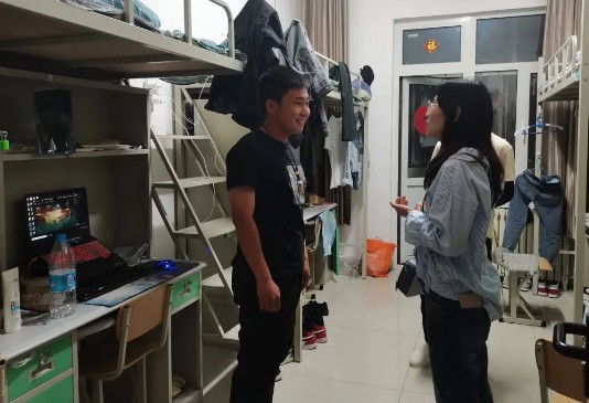 钟欣老师对重点关注学生宿舍进行安全教育,引导学生养成良好的卫生习惯,营造和谐文明的宿舍环境,对部分卫生不达标的宿舍予以提醒和整顿。并且钟老师对宿舍成员提出的问题答疑解惑,并认真的听取同学们就当下专业学习、社会实践、文化活动、思想动态、就业规划等在校生活提出的意见及建议。