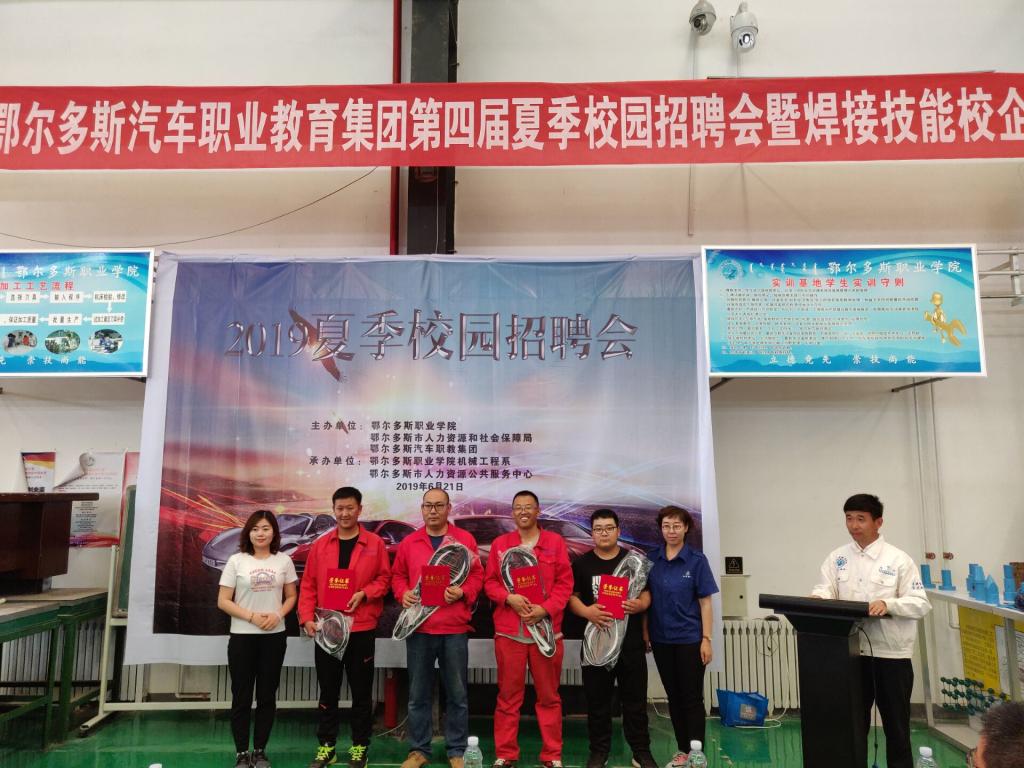 6月21日,由市人力资源和社会保障局、开云手机官方版在线入口、鄂尔多斯汽车职业教育集团主办,学院招生就业处、机械系及鄂尔多斯市通惠供热燃气集团承办的“2019夏季校园招聘会暨校企焊接技能友谊赛”在机械系机加工、焊接实训车间隆重举行。学院党委副书记、院长巴图查干,党委委员、副院长陶文辉,招生就业处处长孙虎,鄂尔多斯市广本信达通店、鄂尔多斯市铁西上汽荣威4S店、通惠供热燃气集团等25家企业领导及代表,机械工程系师生参加了此次活动。