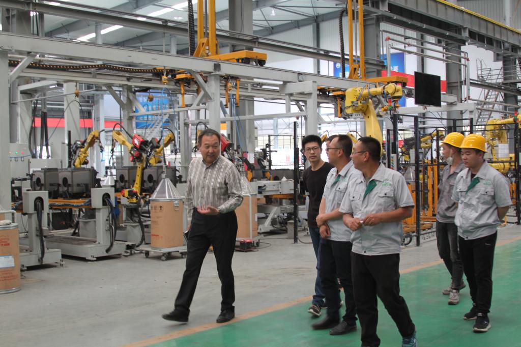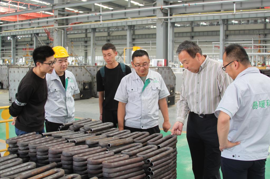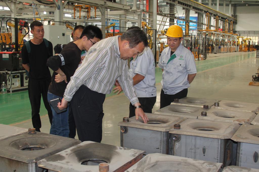 巴图查干院长一行考察了生产车间冲压生产线、工业机器人焊接生产线和成品展览馆,详细了解了易暖科技有限公司的人员规模、生产经营状况和研发情况,并与我院正在该公司实习的学生进行了亲切交谈。