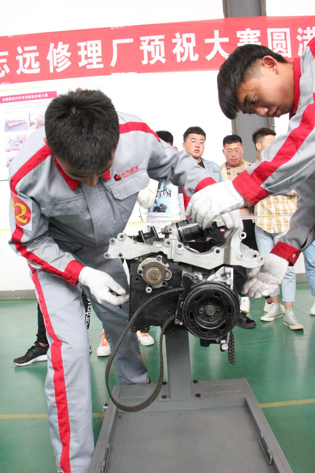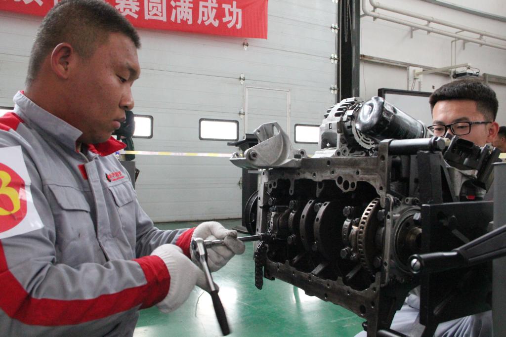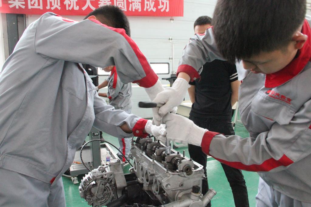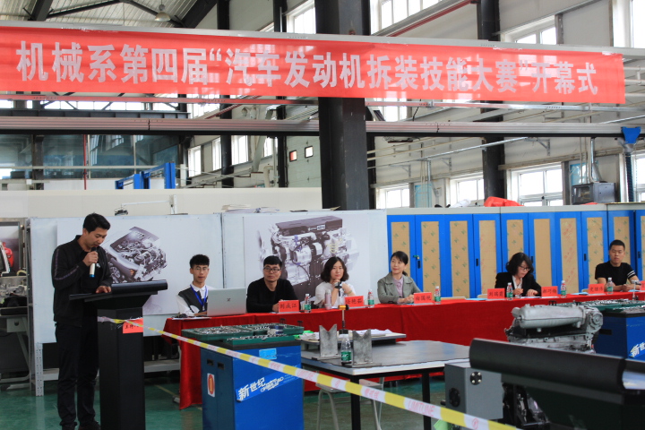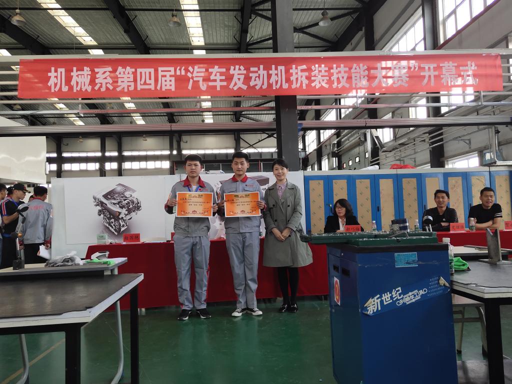 在裁判代表刘成江老师宣读完比赛规则后,汽车发动机拆装比赛正式拉开帷幕。本次比赛共六支参赛队,每个团队由两名学生组成,比赛从下午3点一直持续到5点30分结束,大赛在限定时间内重点考察了选手的精神风貌以及对发动机拆装的熟练程度、规范性、完整性和准确性。经过紧张有序的比拼,最终,马云瑞、张鹿鹿获得一等奖,李镇宇、刘成义获得二等奖,苏嘉宇、东山 获得三等奖,张宏伟、忻世宇、权俊良、魏征、刘佳佳、高帅获得优秀奖。