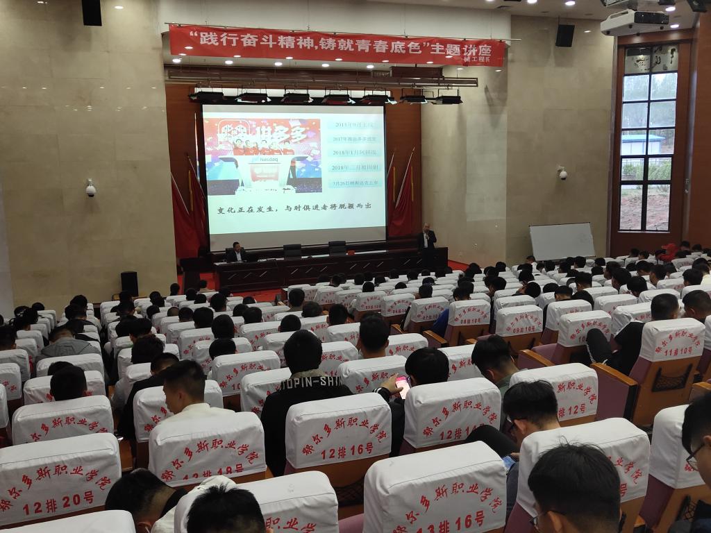 曹经理从认识自己、寻求实践的阶梯和职业生涯规划等几个方面进行了深入浅出的讲解。讲解中引入阿里巴巴集团创始人马云、拼多多创始人黄峥的励志奋斗故事,讲座视频等多种互动方式,并结合自己在工作中积累的经验和丰富的阅历,给学生讲解了许多职业态度、职业规划的案例,并向同学们提出几点希望:第一,希望同学们加强自身学习,提升专业技能;第二,希望同学们注意把自己的所学专业和社会需求相结合起来,注重实际技能的培养。此次讲座内容丰富多彩,语言生动幽默且具有哲理,同学们均感到受益匪浅。