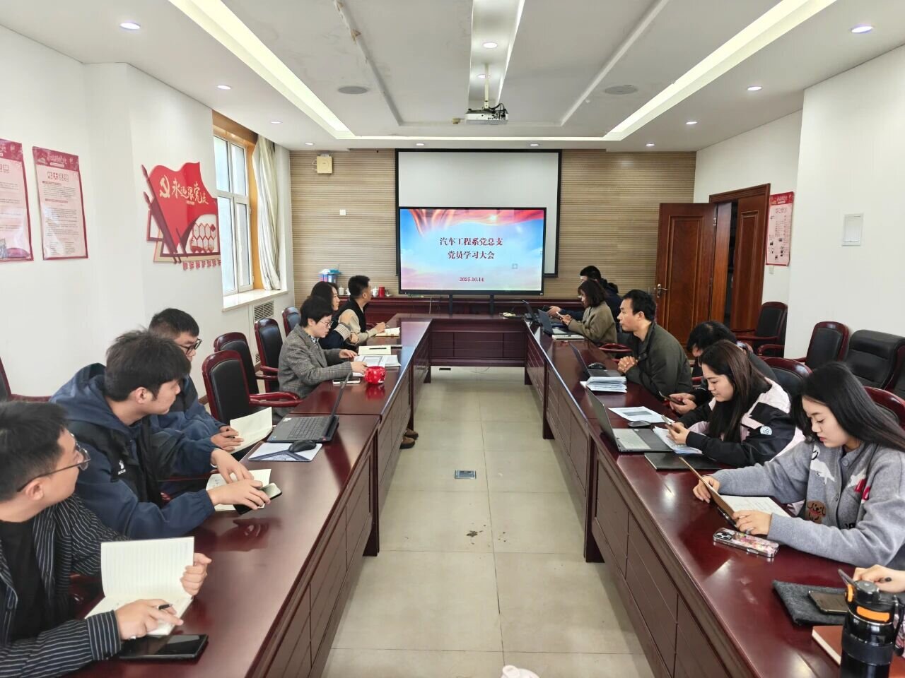 10月14日,汽车工程系党总支召开党员学习大会。系党总支副书记杜瑞主持会议,系部全体无课教师参加学习。